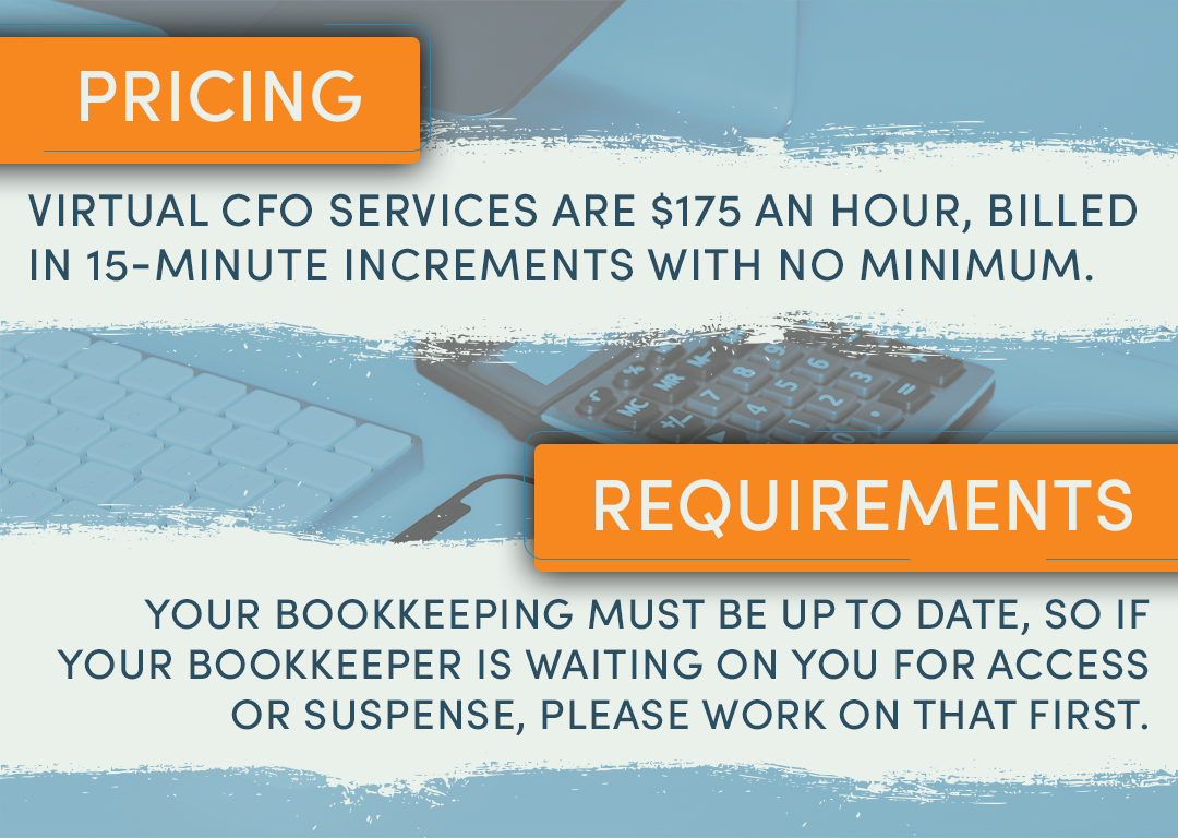 Monthly bookkeeping is the foundation to work off. Once you have your financials, our CFO Consulting Services can build with you and take you to the next level of business strategy and financial planning, creating profit-building plans that make sure your finances are supporting your dreams and your day-by-day.