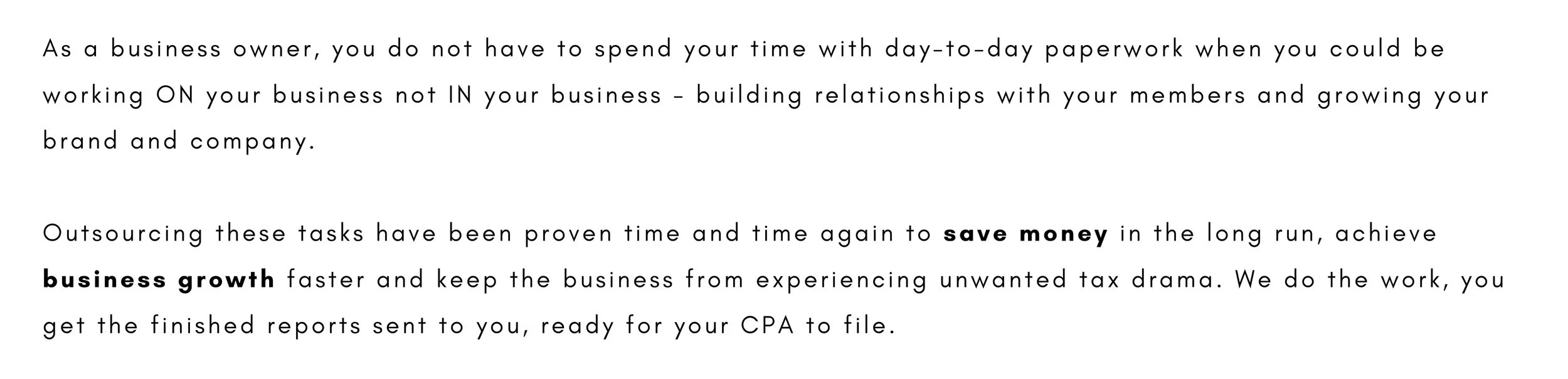 As a business owner, you do not have to spend your time with day-to-day paperwork when you could be working On your business not IN your business.